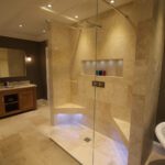 A luxury walk in shower. This features heated seats that are LED underlit. The low iron glass is ultra clear.