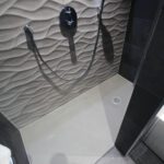 The stunning Focus shower tray from Acquabella. With Porcelanosa Ona Natural tiles.