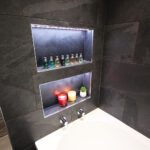 Convenient LED lit recesses in both the bath and shower space. Perfect for body washes and candles. No nasty shower baskets!
