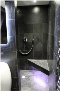 So if you are a man looking at a bathroom with all the above features, then Stone and Chrome can definitely help! The first image below shows a slate ensuite with wetroom, featuring a luxury walk in shower and heated seat. Below that is our Castiel Cararra marble ensuite with its spectacular walk in shower with multiple shower heads and subtle LED lit heated seating.