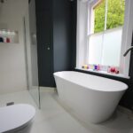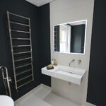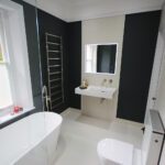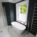 1 – This beautiful bathroom resides in an older listed property. The client wanted a very simple bathroom with clean lines. Off white tiles with a punchy paint choice.