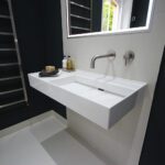 10 – Beautiful clean lines with the Laufen Kartell 900W wall hung SaphirKeramik basin.