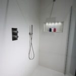 4 – All of the brassware in the room is brushed stainless steel. A beautiful subtle finish. As always we used Impey wetfloor systems and Kudos glass for this walk in shower.