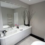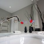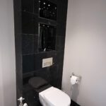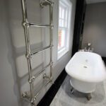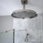 We nickel plated the Geberit Sigma50 flush plate to match with the rest of the nickel brassware. The Ceramica Catalano Canova Royale WC offers a traditional twist for a wall hung WC with it’s subtle detailing.