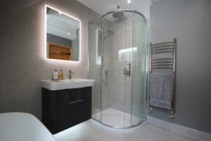 Merlyn Arysto 8 offset quadrant shower enclosure with hansgrohe shoer system.