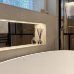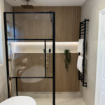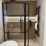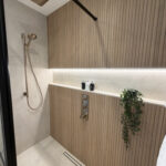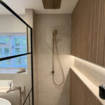 Every element — from the Zehnder Stellar Spa towel rail to the AXOR thermostatic modules — enhances the quiet sophistication of this design. This is a bathroom defined by harmony, restraint, and sensory balance: a true expression of Japandi serenity in bronze, wood, and quiet light.