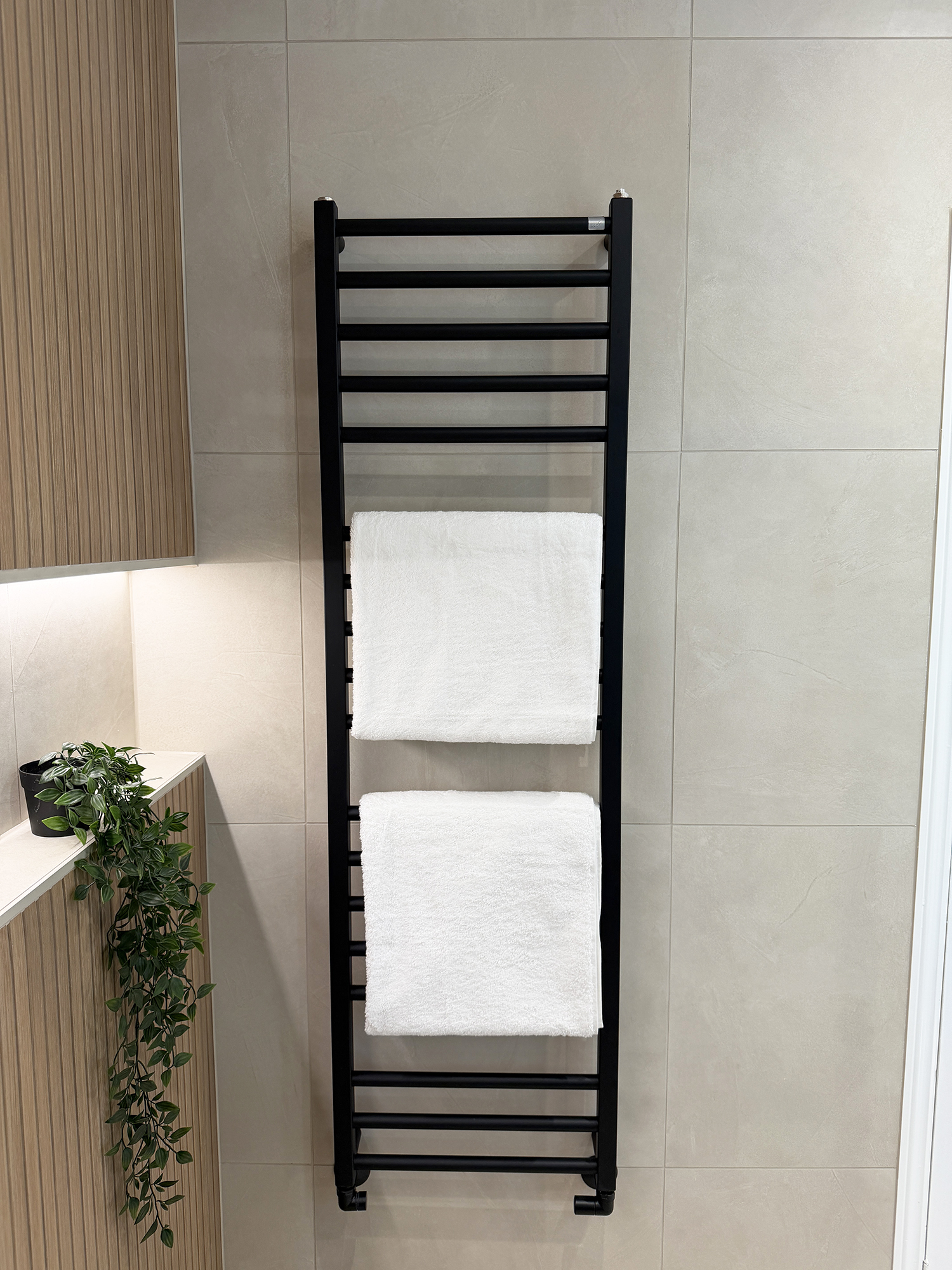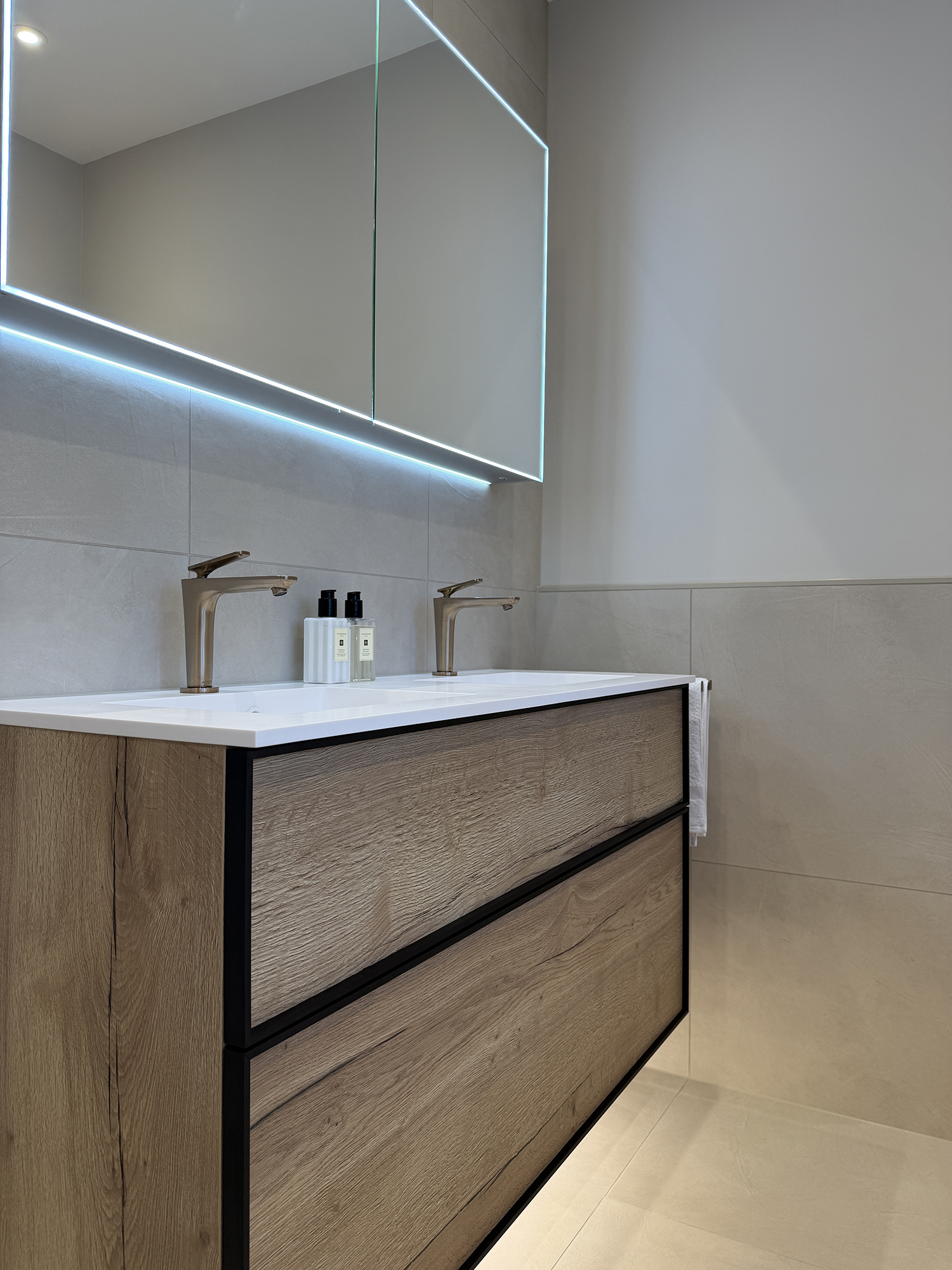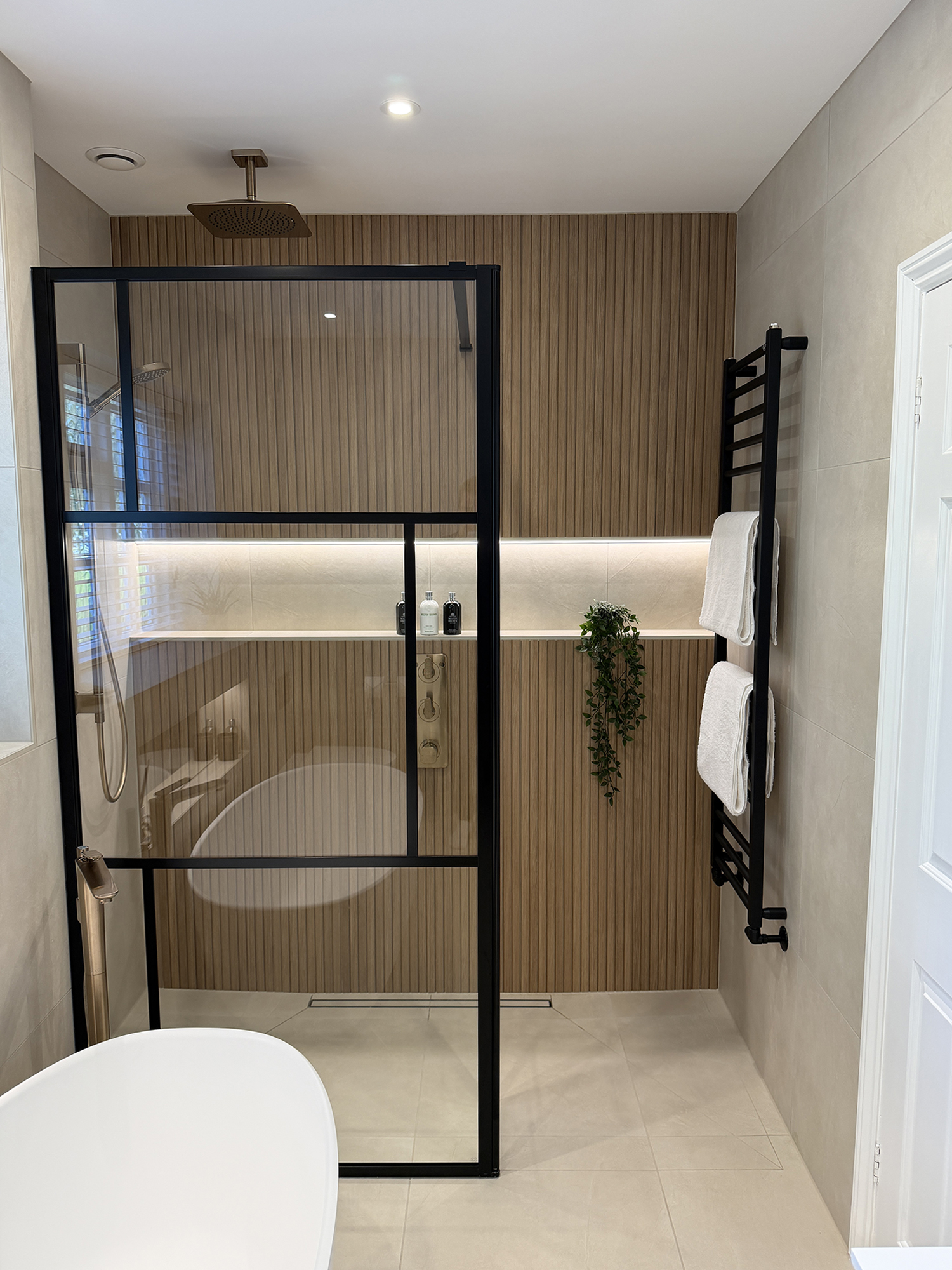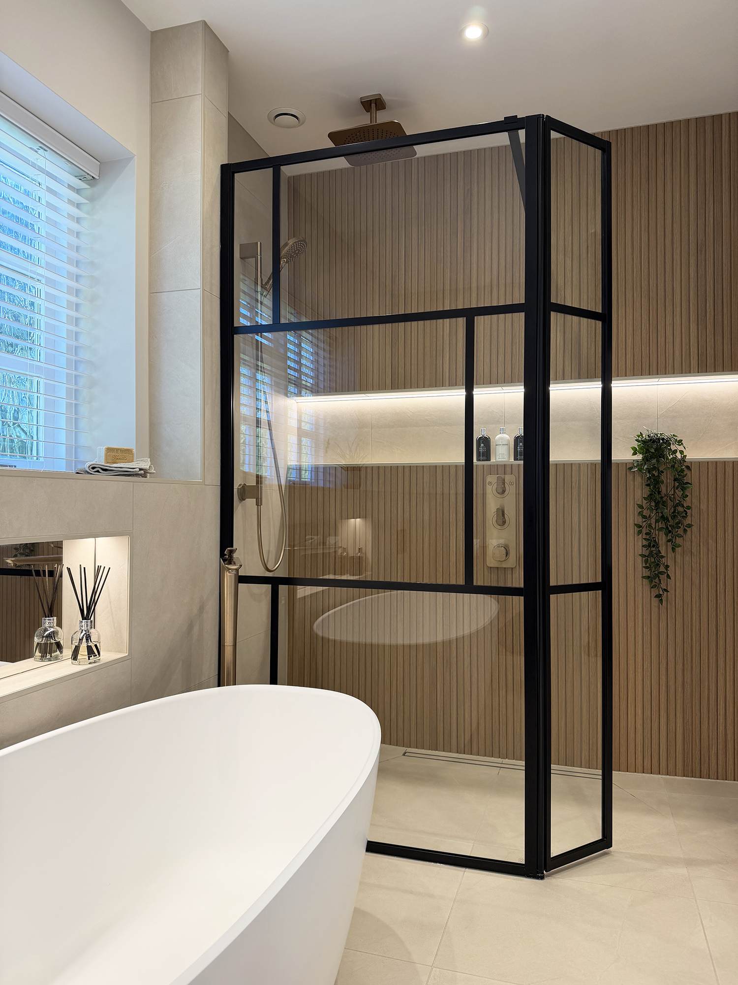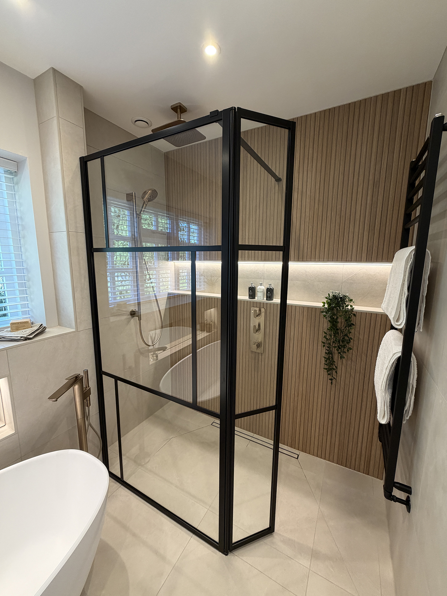 Every element — from the Zehnder Stellar Spa towel rail to the AXOR thermostatic modules — enhances the quiet sophistication of this design. This is a bathroom defined by harmony, restraint, and sensory balance: a true expression of Japandi serenity in bronze, wood, and quiet light.