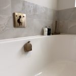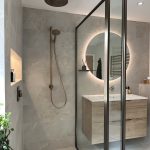Ivory elegance: a timeless bathroom with brushed bronze accents