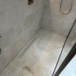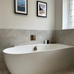 Step into a space of refined luxury with this beautifully designed master en-suite. Featuring elegant ivory onyx tiles, the room is bathed in a soft, warm glow that enhances its serene and sophisticated ambiance. The walls, painted in Farrow & Ball Strong White, provide a crisp, neutral backdrop, allowing the textures and finishes to shine.