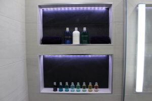 Last but not least. The morning routine will be so much easier if everything that is needed to get ready is at hand. This is where Stone and Chrome can help. We can create some stunning bathroom storage solutions for you to ensure that everyone’s essential bits and pieces are easy to grab hold of but also snugly stored away so that your bathroom still looks stunning. Many are enhanced by our trademark LED lighting to add that little touch of magic which all the family will love.