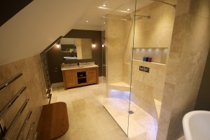 A loft conversion is another cost-effective way to gain extra living space that could then be used as a master bedroom, additional living room or an office. It will have more flexibility and add more value if you install an ensuite bathroom. The image below shows an example of a Stone and Chrome attic wet room and bathroom.